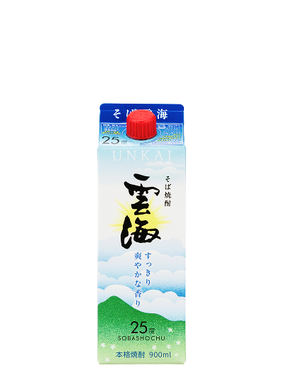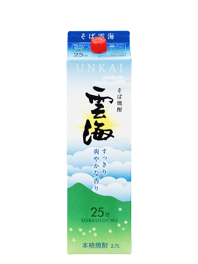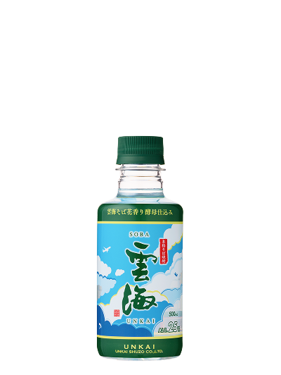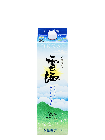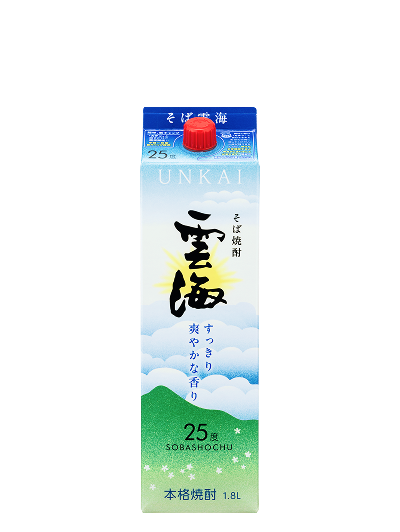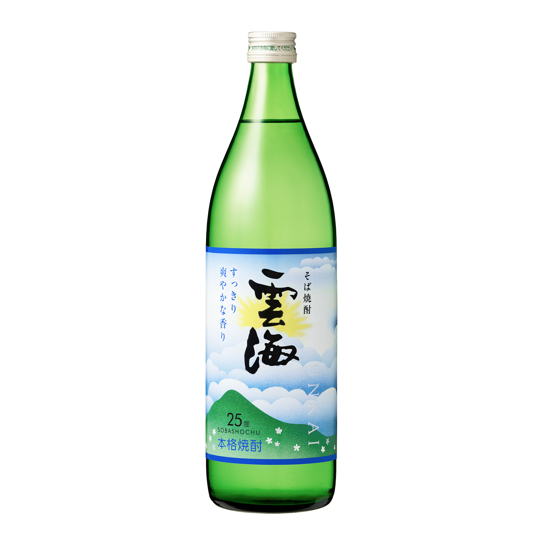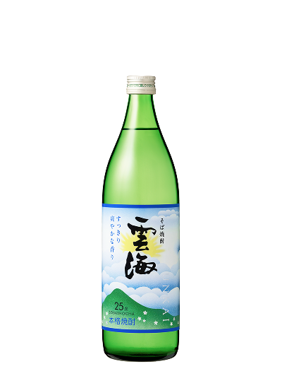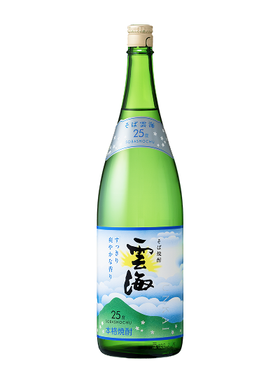そば焼酎の定番品として好評いただいているロングセラー商品。厳選されたそばと当社独自の酵母『雲海そば花香り酵母』による、フルーティーな甘い香りとすっきりとした飲み口が特徴。そば焼酎「雲海」は、雲海酒造が日本で初めてそばを原料として開発した本格そば焼酎です。