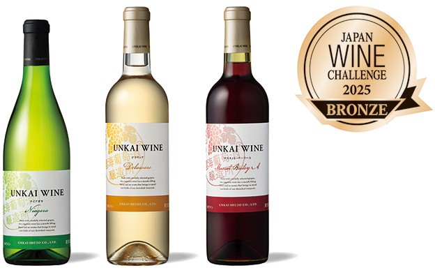 『第28回ジャパン・ワイン・チャレンジ2025』にて、出品した雲海ワイン3商品「ナイアガラ」「デラウェア」「マスカット・ベーリーA」が銅賞を受賞しました。