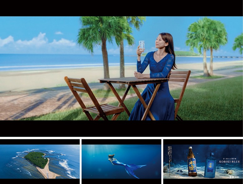 また、今回は宮崎の海を象徴する青島でのロケーション撮影と生成AIを組み合わせて制作し、人魚のビジュアルにはリアル(モデル)と幻想の境界線上を狙い、『木挽BLUE』を飲んだときの高揚感、浮遊感を印象的な映像で描いています。